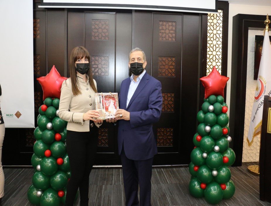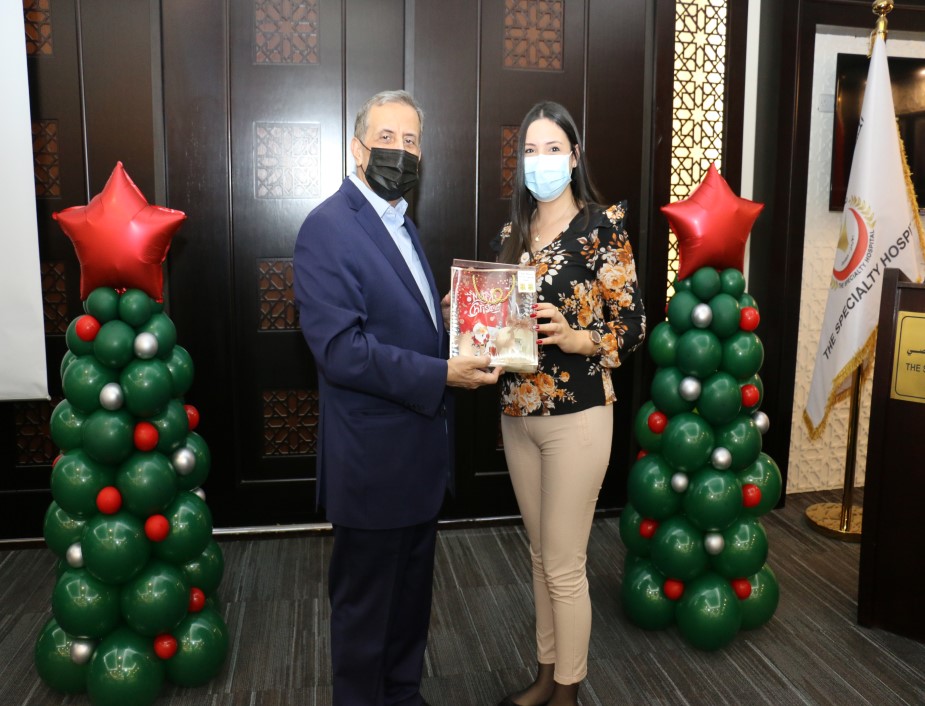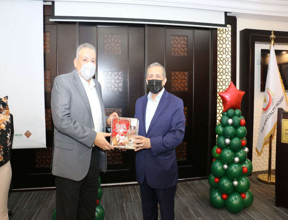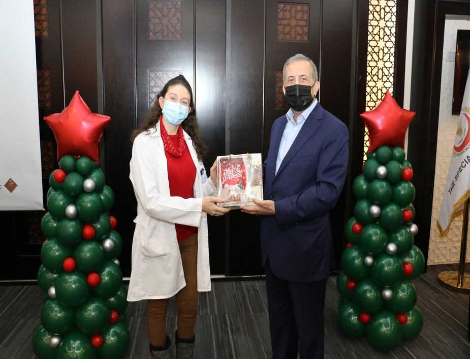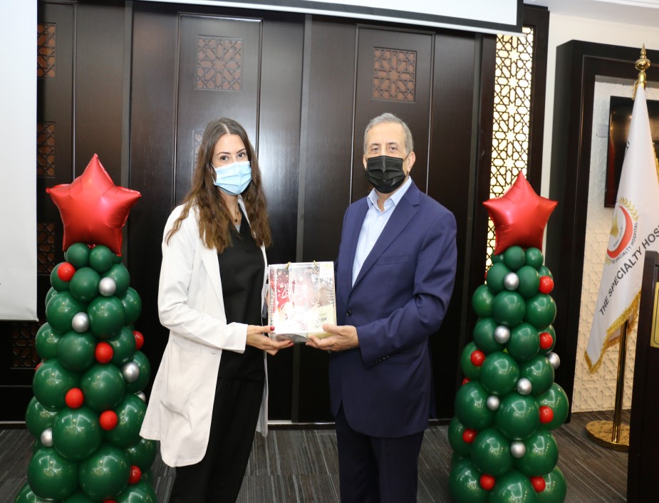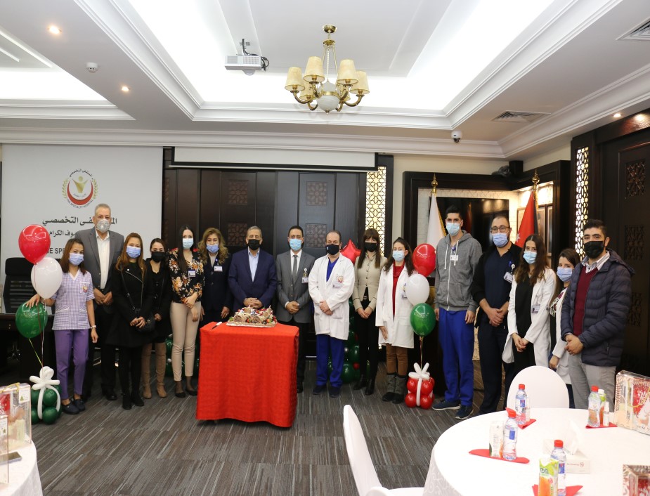 ابتهاجاً بقرب عيد الميلاد المجيد ورأس السنة الميلادية احتفل المستشفى التخصصي مع موظفيه المسيحيين حيث شارك رئيس هيئة المديرين ومدير عام المستشفى التخصصي الدكتور فوزي الحموري الموظفين المسيحيين من كافة الأقسام فرحتهم بقدوم العيد مقدماً لهم الهدايا .
