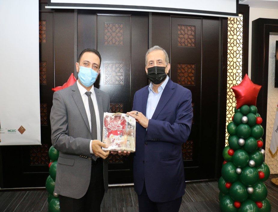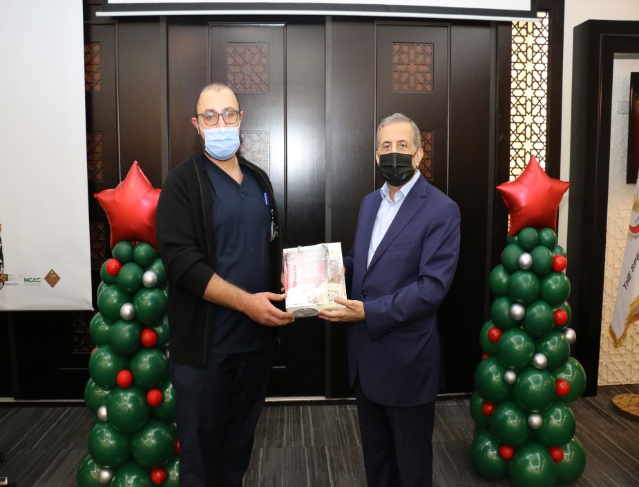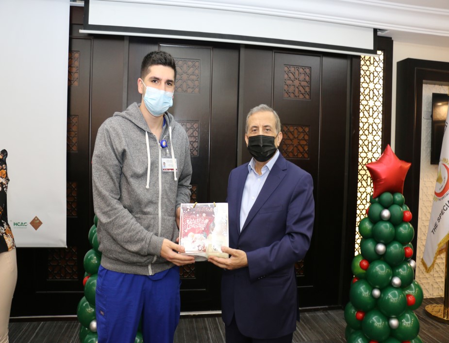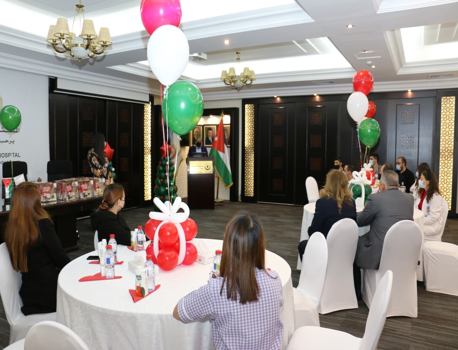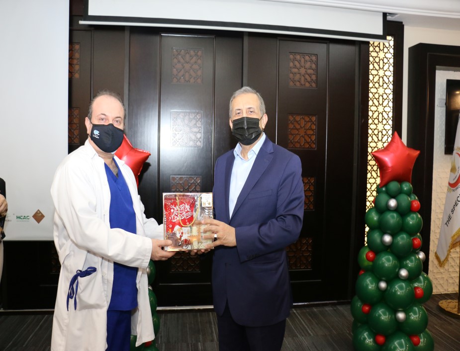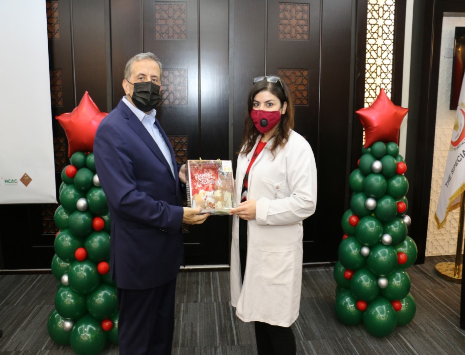 ابتهاجاً بقرب عيد الميلاد المجيد ورأس السنة الميلادية احتفل المستشفى التخصصي مع موظفيه المسيحيين حيث شارك رئيس هيئة المديرين ومدير عام المستشفى التخصصي الدكتور فوزي الحموري الموظفين المسيحيين من كافة الأقسام فرحتهم بقدوم العيد مقدماً لهم الهدايا .