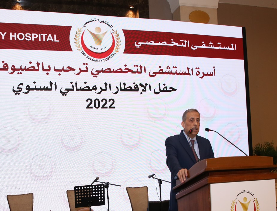 وأعرب رئيس هيئة المديرين المدير العام للمستشفى التخصصي الدكتور فوزي الحموري ضمن الكلمة الترحيبية التي ألقاها عن سعادته بهذا اللقاء الذي حضره عدد كبير من خيرة الأطباء والشخصيات خاصةً وأنه يأتي بعد انقطاع دام أكثر من عامين بسبب جائحة كورونا. كما توجه بالشكر لكل من ساهم في تجاوز هذه الجائحة وخاصة جنود الجيش الأبيض من الأطباء والكوادر الصحية المساندة.