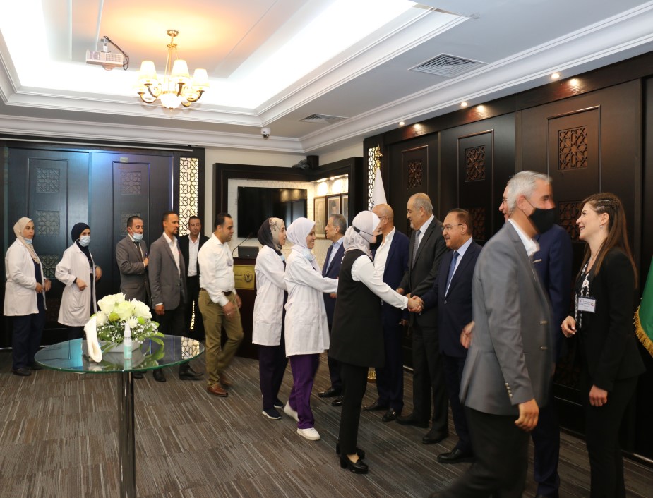 حيث قام عدد من الأخصائيين وكوادر المستشفى من مختلف الأقسام بالمعايدة على المدير العام الدكتور فوزي الحموري وبعضاً من أعضاء الهيئة العامة وعدد من مدراء الدوائر.