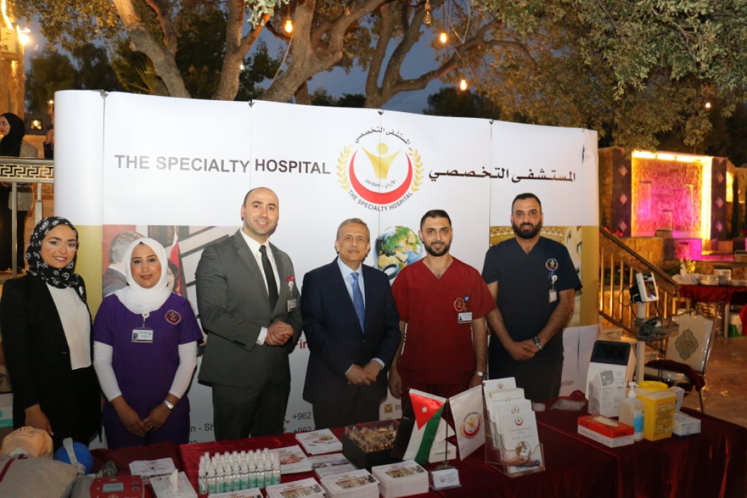 حيث تضمنت مشاركة المستشفى التخصصي، إرسال فريق طبي وكادر مؤهل مزود بأحدث الأجهزة الطبية المستخدمة بالمختبرات الطبية لإجراء الفحوصات المخبرية وإصدار النتيجة خلال مدة 25 ثانية بالإضافة الى فحص السكر وقياس ضغط الدم وتدريب الحاضرين على كيفية تقديم الإسعافات الأولية والتي قدمت من المركز التخصصي للتدريب المعتمد من جمعية القلب الأمريكية AHA وكلية الجراحين الأمريكية، حيث يوفر المركز جميع برامج دعم الحياة الأساسية والمتقدمة.