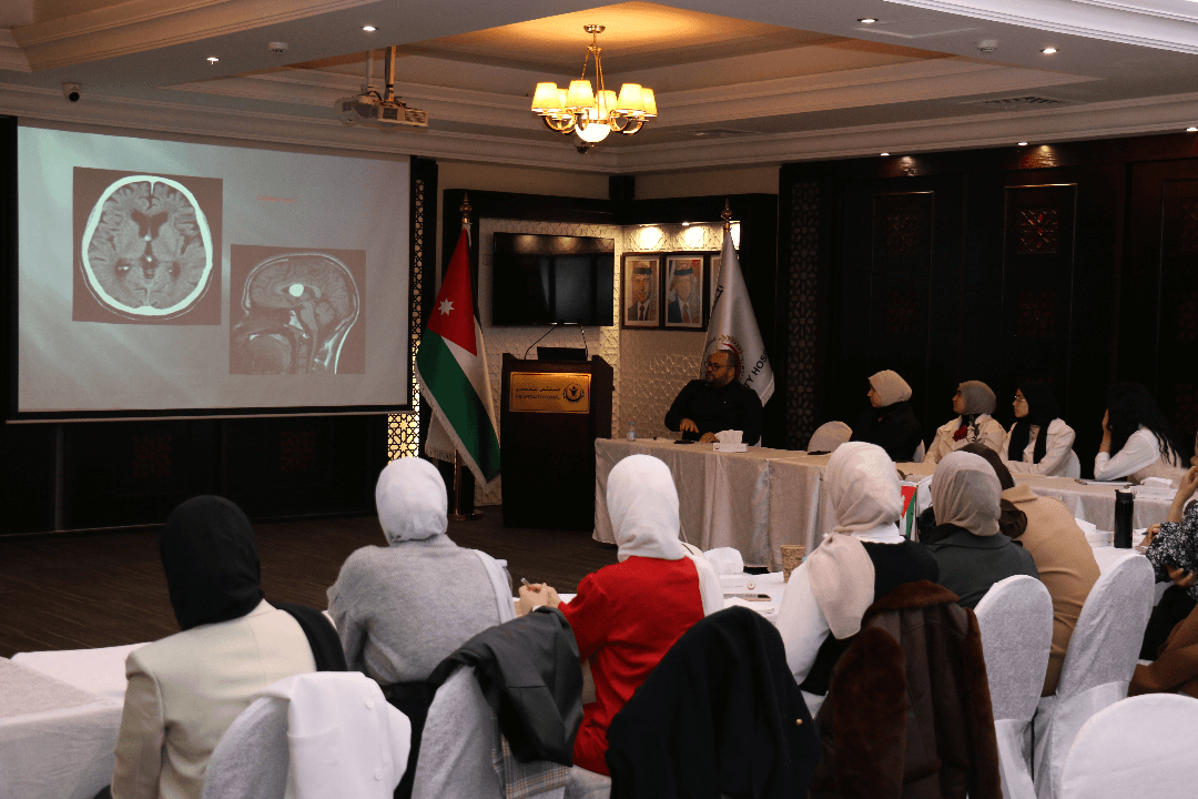 حيث قدم الدكتور وسام شما استشاري الأشعة التشخيصية محاضرات تفاعلية عرض فيها حالات مميزة عن التصوير الشعاعي للجهاز العصبي وأهمية التشخيص الدقيق وتم اختتام الورشة بعمل امتحان تجريبي (MOC EXAM) لتجهيز الأطباء المقيمين على الاستعداد لامتحان البورد الأردني المزمع عقده في فبراير المقبل.