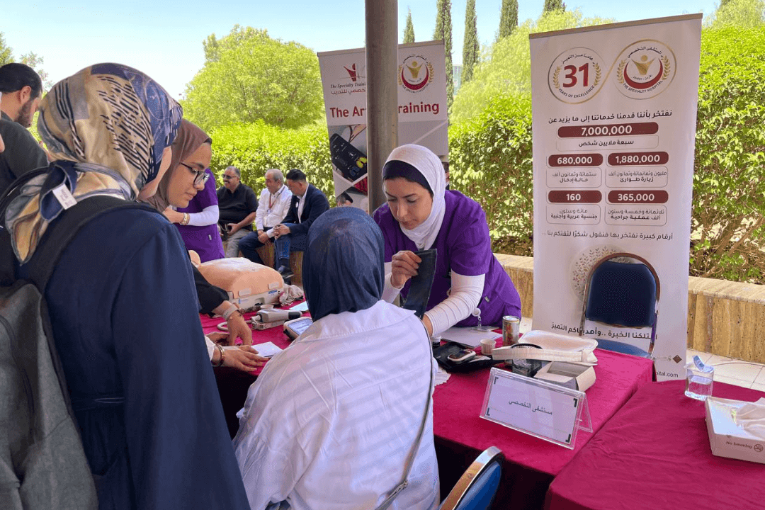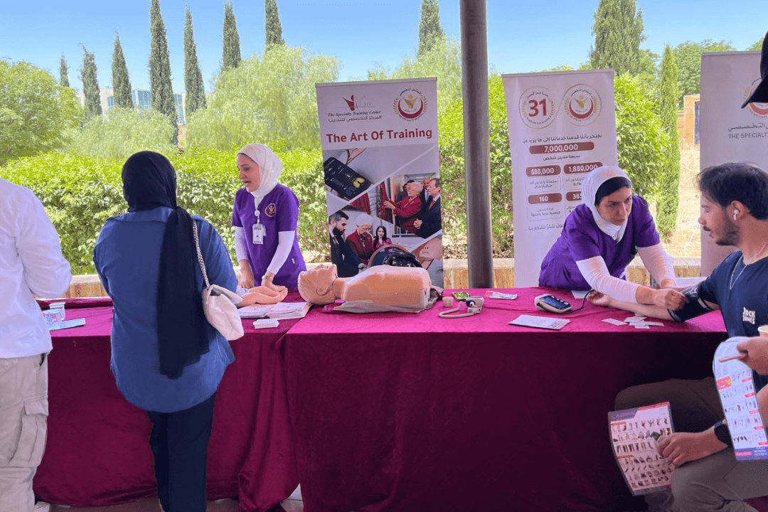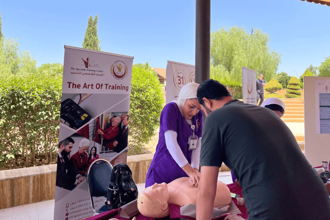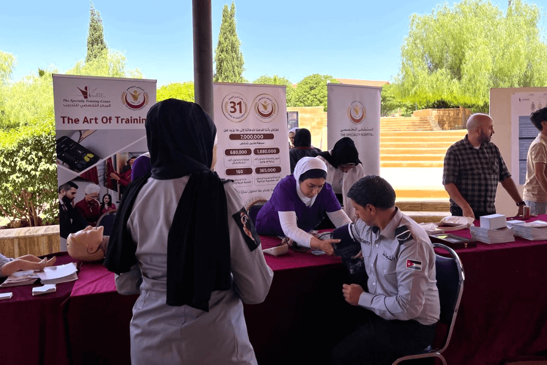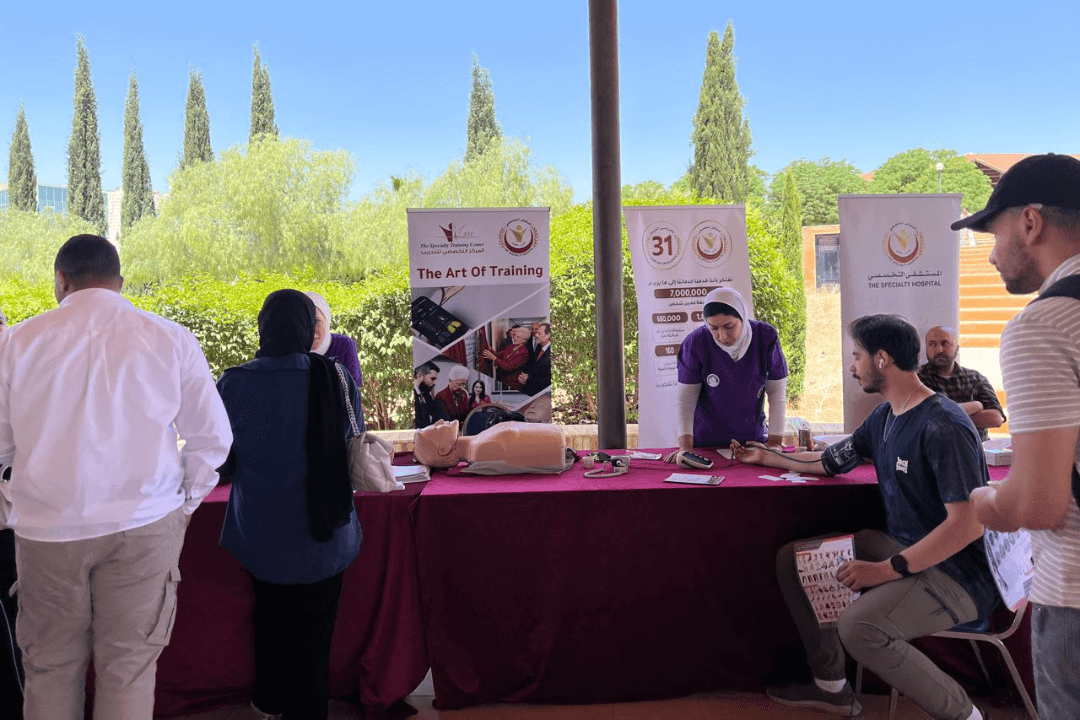 وقدّم فريق المستشفى خلال الفعالية خدمات طبية مجانية للطلبة وأعضاء الهيئة التدريسية، وشملت قياس ضغط الدم ونسبة السكر في الدم، إضافة إلى تدريب الحضور على الإسعافات الأولية والتي تهدف إلى رفع مستوى الوعي بأهمية التدخل السريع في الحالات الطارئة.