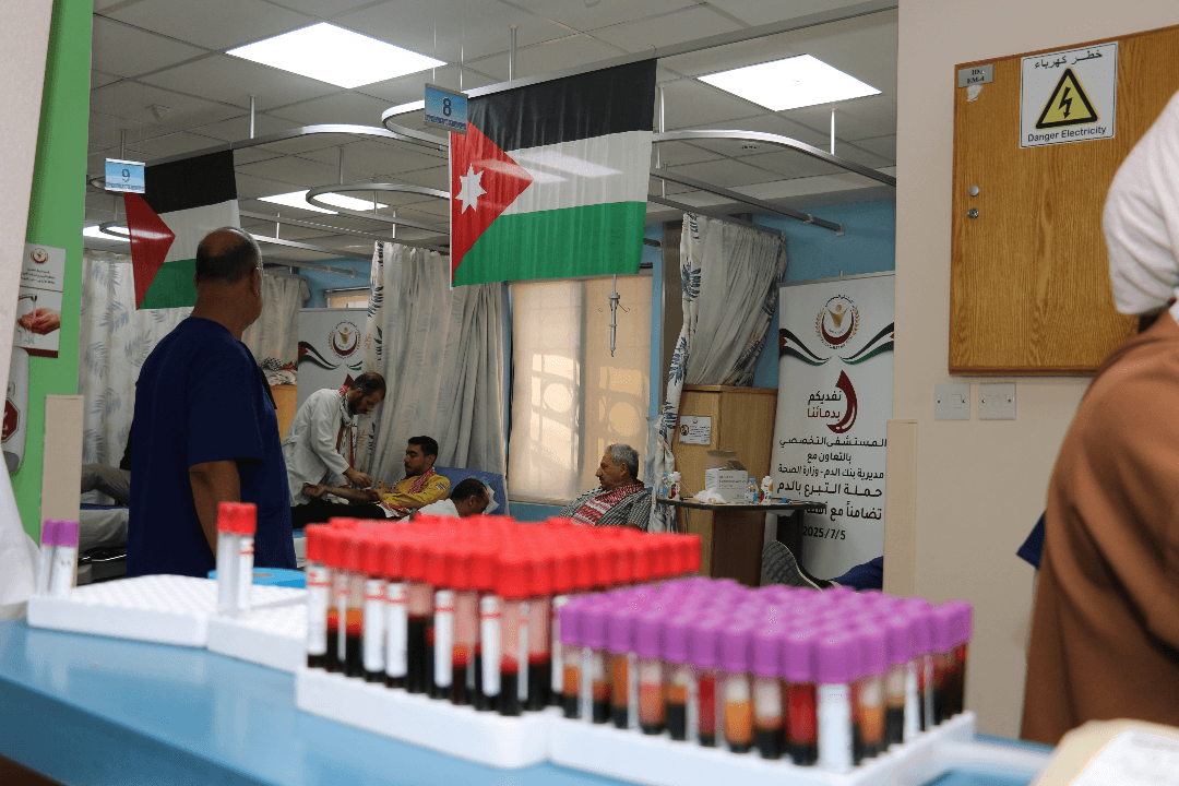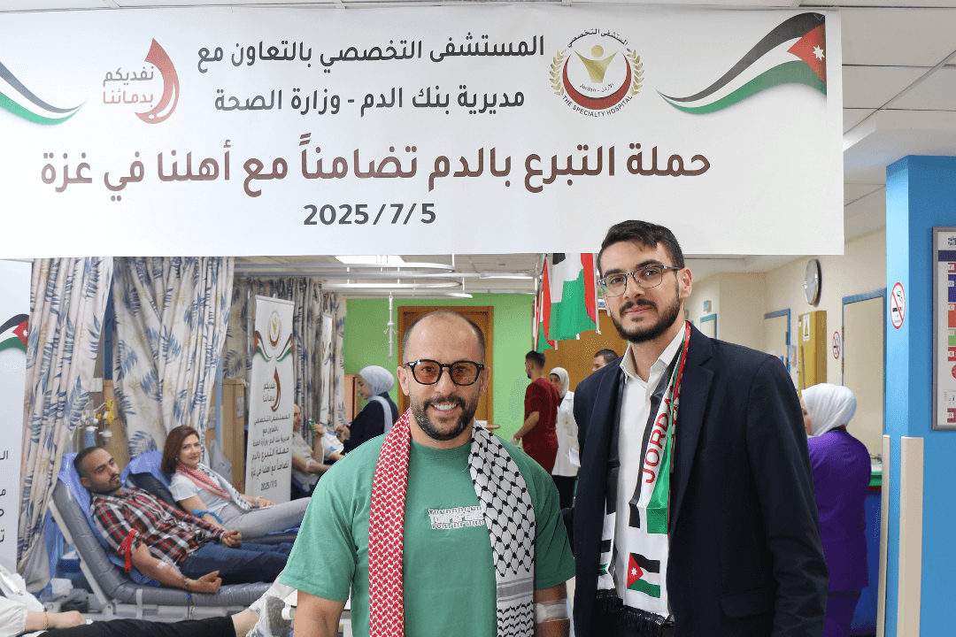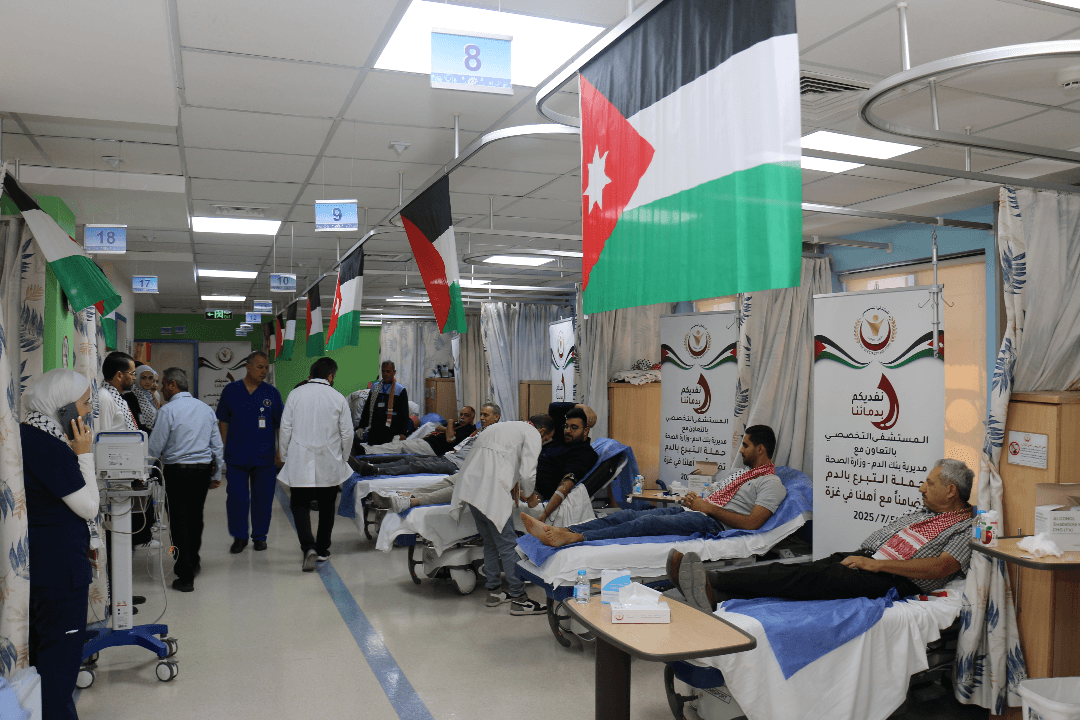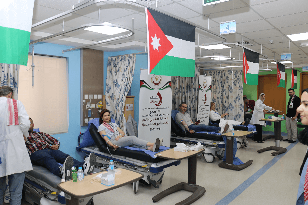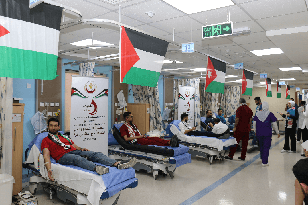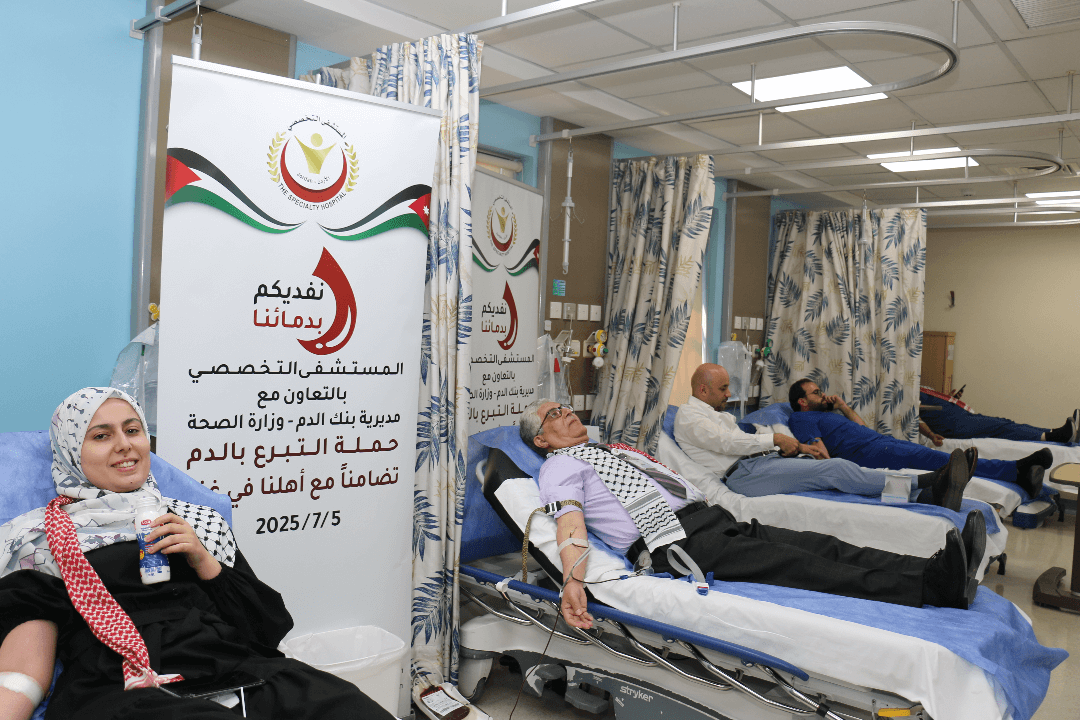 أكد الدكتور فوزي الحموري، مدير عام المستشفى التخصصي، أن هذه المبادرة الإنسانية والوطنية تأتي امتدادًا لمواقف الأردن الثابتة، بقيادة جلالة الملك عبدالله الثاني ابن الحسين المعظم، في نصرة الشعب الفلسطيني وقضيته العادلة، وتخفيفاً لمعاناة أهل غزة وتضامناً معهم في ظل الحصار الخانق والنقص الحاد في وحدات الدم، ما يجعل التبرع اليوم أكثر من مجرد واجب، بل رسالة حياة.