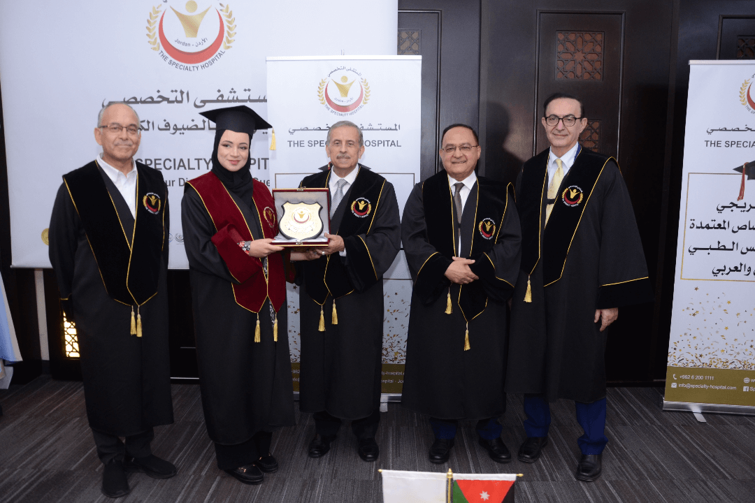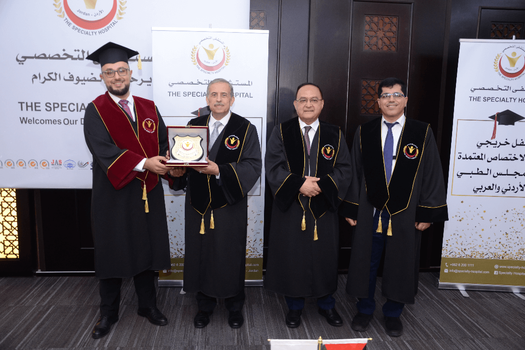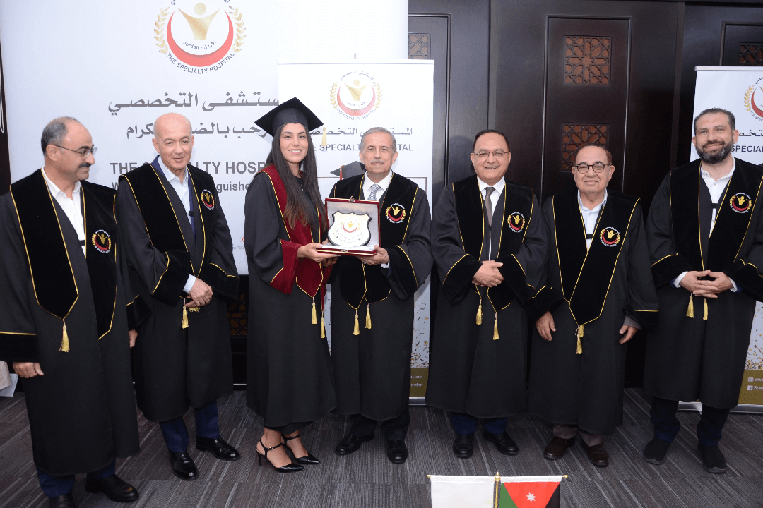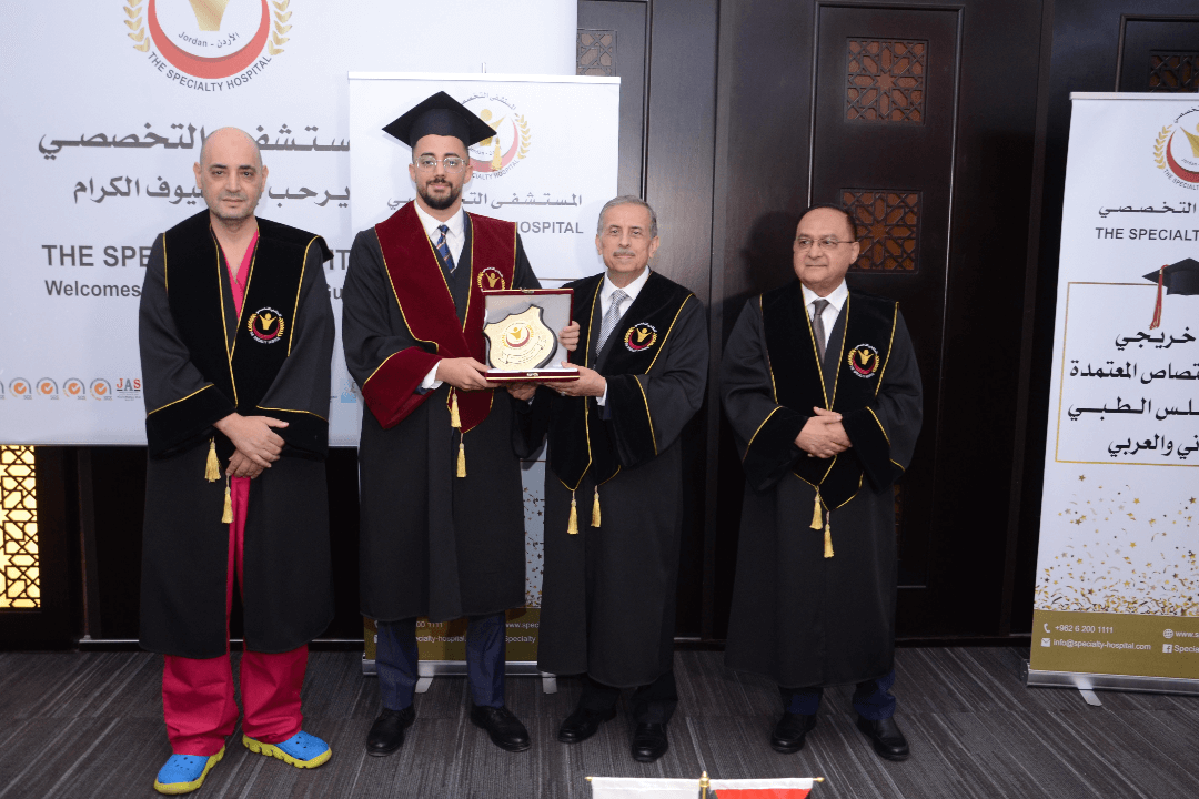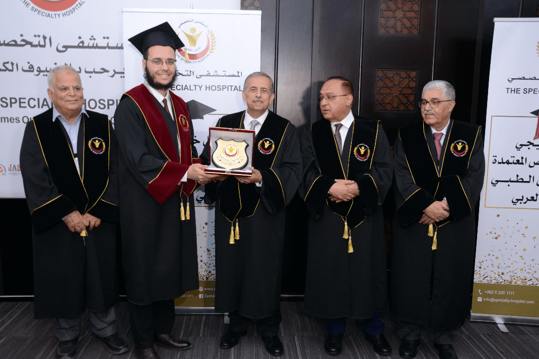 ويُذكر أن خريجي المستشفى التخصصي يتميزون بنسبة نجاح مرتفعة في امتحانات البورد الأردني والعربي، بالإضافة إلى اجتيازهم بنجاح امتحانات الزمالة البريطانية والأوروبية، ما يعكس المستوى الأكاديمي والتدريبي المرموق الذي يقدمه المستشفى.