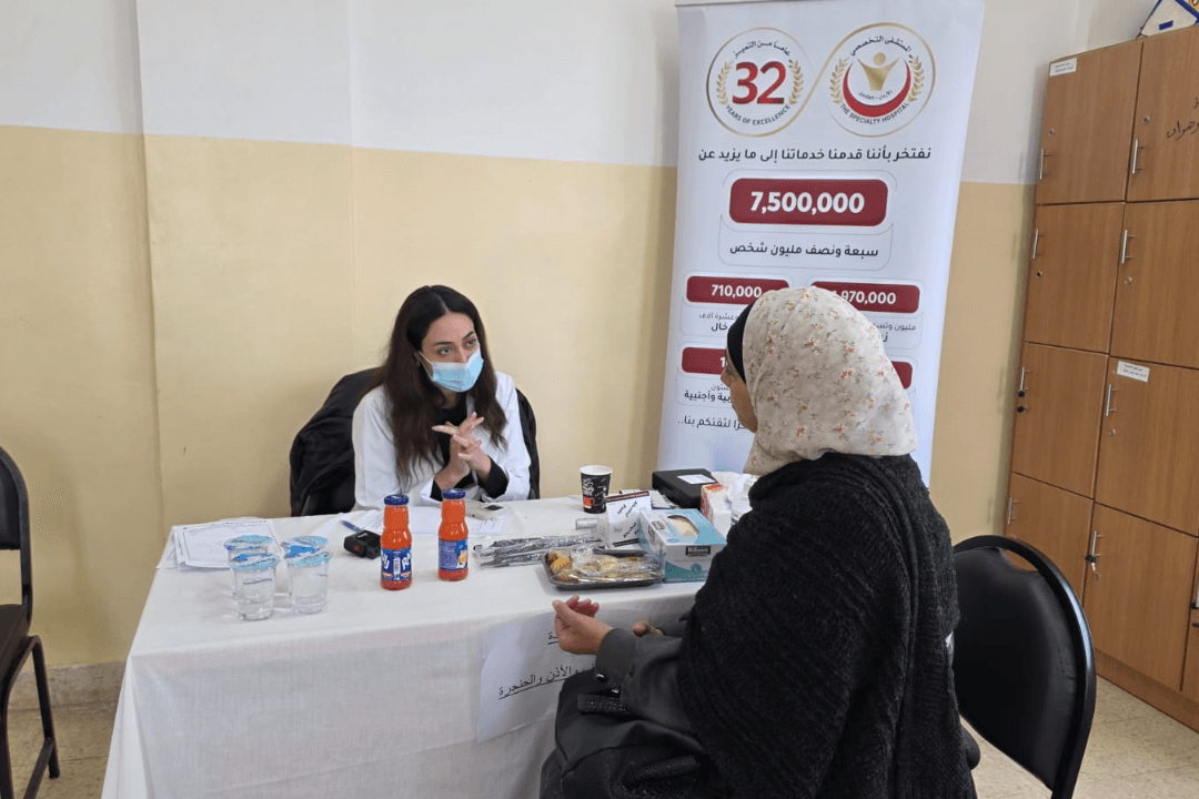 نظم المستشفى التخصصي بالتعاون مع نقابة المهندسين، يومًا طبيًا مجانيًا في منطقة عيرا / لواء السلط، وذلك داخل مدرسة عيرا الثانوية للبنين وتضمّن اليوم الطبي تقديم فحوصات واستشارات طبية مجانية في عدد من التخصصات، شملت الباطنية، النسائية، جراحة المسالك البولية، الأنف والأذن والحنجرة، الأطفال، والعظام، إضافة إلى تقديم استشارات تغذوية من قبل أخصائيي التغذية. كما أجرى فريق التمريض فحوصات السكري وضغط الدم، حيث بلغ عدد المستفيدين من هذا اليوم الطبي المجاني أكثر من 200 شخص من مختلف الفئات العمرية.